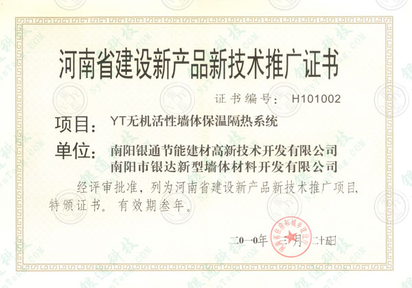 此證書為歷年證書,本介紹頁僅為方便用戶了解查詢企業(yè)歷史資質(zhì),望悉知 河南省建筑節(jié)能產(chǎn)品核準(zhǔn)證書 有效期三年。 頒發(fā)時(shí)間:2010年3月25日