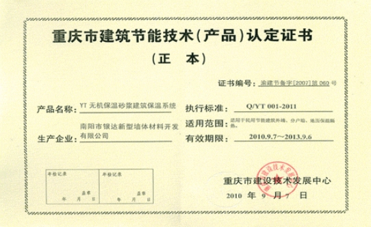 此證書為往年曾獲證書,本介紹頁僅為方便用戶了解企業(yè)歷史資質(zhì),望悉知 重慶市建筑節(jié)能基礎(產(chǎn)品)認定證書