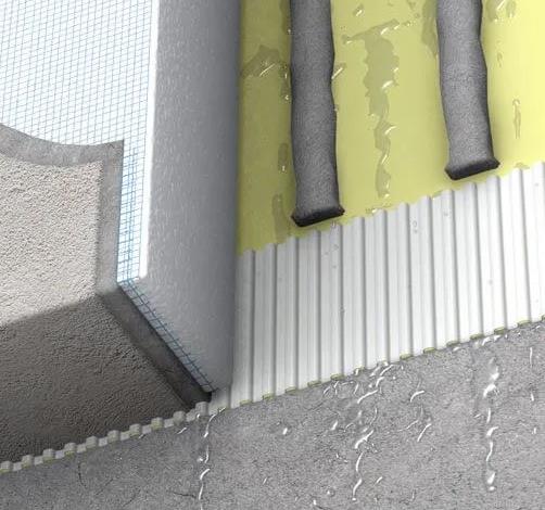 所以在2009年,美國新的法規(guī)規(guī)定保溫系統(tǒng)需要有排水槽,穿墻管等部位的密封處理。新設計的的外墻外保溫系統(tǒng)中要做出防水溝或排水槽,排水溝是用鏝刀將粘結砂漿批出膠條;排水槽是保溫板加工出溝槽。