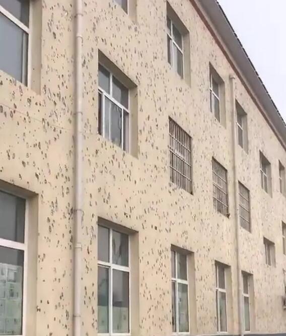 另外網(wǎng)格布是防護(hù)面層的筋骨,一是需要有足夠的耐堿斷裂強(qiáng)力,不能一拉就斷。二是要耐堿,不能幾天過后就粉化了,但現(xiàn)實(shí)運(yùn)用中,還是有大量非標(biāo)網(wǎng)格布充斥市場(chǎng)。在上圖所示冰雹來臨時(shí),并沒有看到網(wǎng)格布應(yīng)該起到的作用。