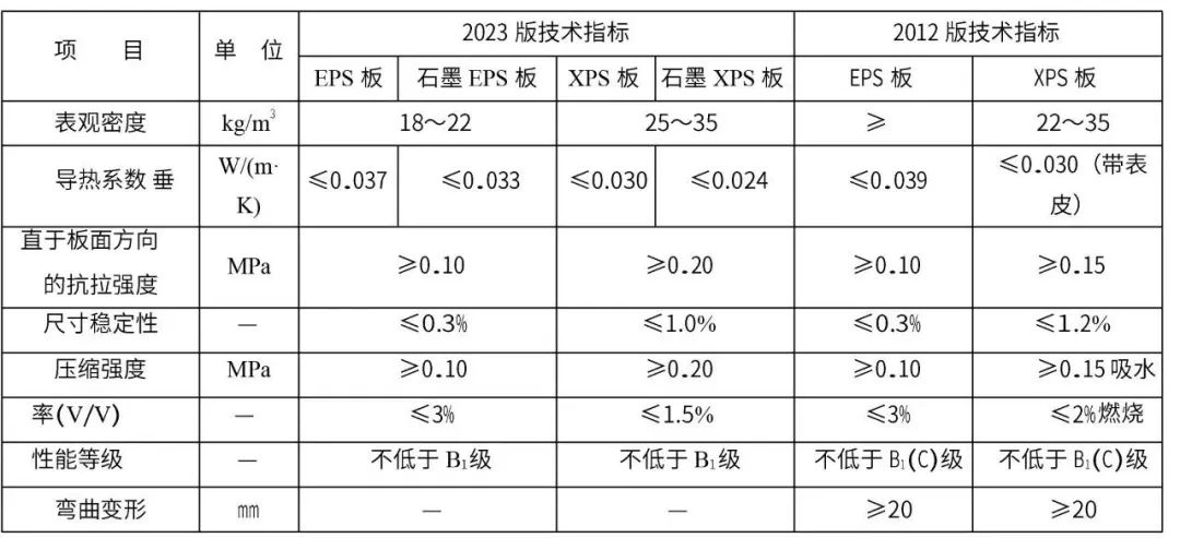 2023 版中增加了硬泡聚氨酯板、酚醛泡沫板、真空絕熱板三種保溫板,其性能指標分別符合現(xiàn) 行行業(yè)標準《硬泡聚氨酯板薄抹灰外墻外保溫系統(tǒng)材料》JG/T 420、《酚醛泡沫板薄抹灰外墻外保溫 系統(tǒng)材料》JG/T 515、《建筑用真空絕熱板》JG/T 438 的規(guī)定。