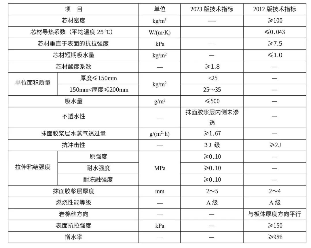 2012 版中的噴涂硬泡聚氨酯、巖棉板、保溫漿料在 2023 版中已經(jīng)取消。