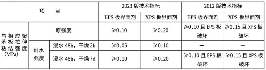 2023 版中取消了聚苯板膠粘劑、巖棉板膠粘劑,增加了粘貼硬泡聚氨酯板用膠粘劑、粘貼酚醛 泡沫板用膠粘劑,其性能指標分別符合現(xiàn)行行業(yè)標準《硬泡聚氨酯板薄抹灰外墻外保溫系統(tǒng)材料》 JG/T 420、《酚醛泡沫板薄抹灰外墻外保溫系統(tǒng)材料》JG/T 515 的規(guī)定。