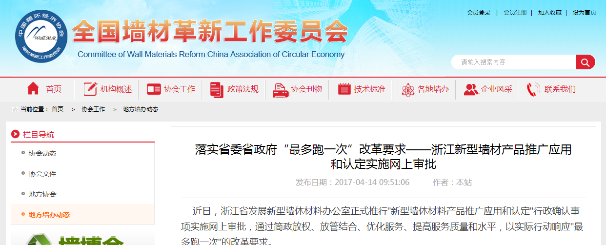 近日,浙江省發(fā)展新型墻體材料辦公室正式推行"新型墻體材料產(chǎn)品推廣應(yīng)用和認定"行政確認事項實施網(wǎng)上審批,通過簡政放權(quán)、放管結(jié)合、優(yōu)化服務(wù)、提高服務(wù)質(zhì)量和水平,以實際行動響應(yīng)"最多跑一次"的改革要求。