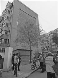 昨日下午1時30分左右,記者來到該小區(qū)門口。從外觀看這幢樓西側(cè)的墻皮都有不同程度的脫落,砸落在地面上的墻皮約10厘米厚,最大的一塊至少有10余平方米。