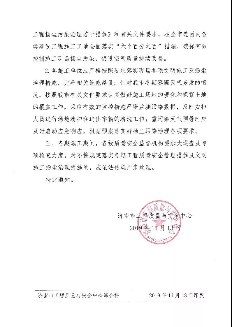11月13日,濟南市工程質(zhì)量與安全中心發(fā)布了《關(guān)于進步一加強房屋建筑工程冬期施工質(zhì)量安全管理工作的通知》,對冬季外墻保溫施工、防水等提出了要求,具體通知如下: