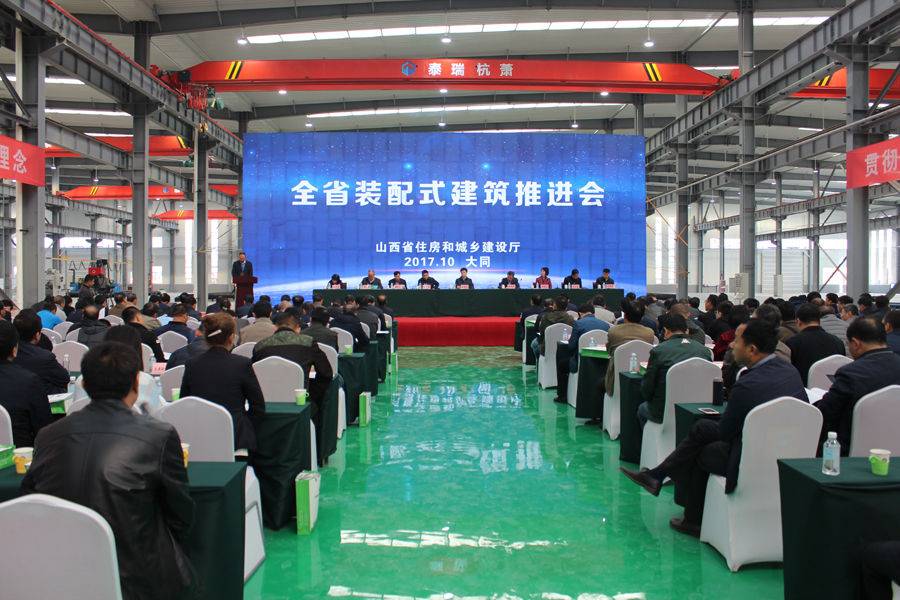 參會人員現(xiàn)場觀摩了大同泰瑞裝配式建筑示范項目和產(chǎn)業(yè)基地建設(shè)情況,之后在裝配式建筑生產(chǎn)線車間現(xiàn)場召開了推進(jìn)會。會議通報了省住房城鄉(xiāng)建設(shè)廳出臺的《裝配式建筑行動方案》,太原、大同兩市住房城鄉(xiāng)建設(shè)主管部門和山西建投、大同泰瑞匯報了工作推進(jìn)情況。