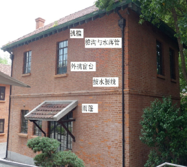 設(shè)有挑檐的建筑,可以讓瓦突出屋的墻面,從而使雨水不會直接流到墻面上。
