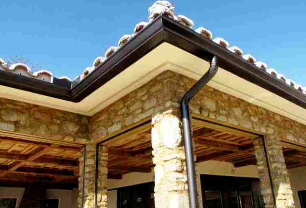 在雨水流下來的檐口,就有天溝接水,然后通過水落管排到地面,這樣就不會有雨水飄到墻上。