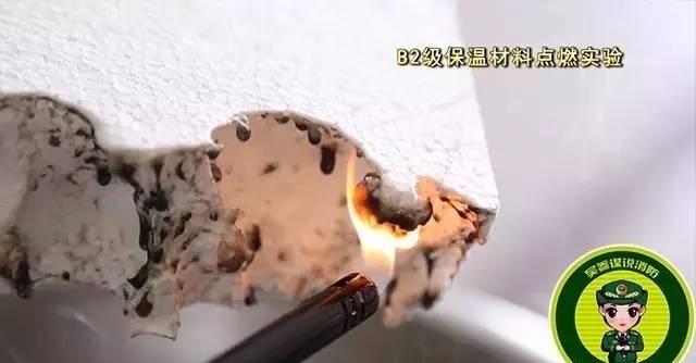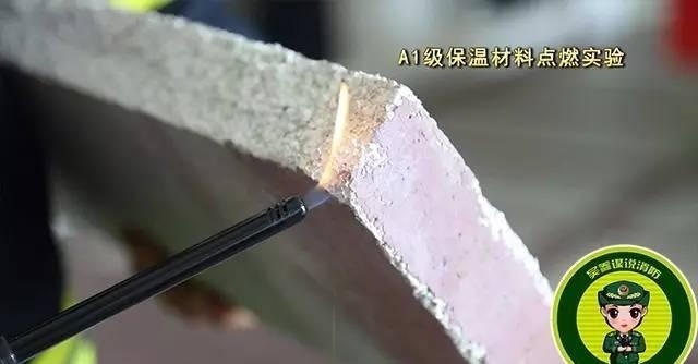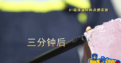 點燃A級保溫材料,保溫材料沒有出現一點要被點燃的跡象,持續(xù)三分鐘后,保溫材料依然沒有被點燃,但有顆粒狀物體掉落。